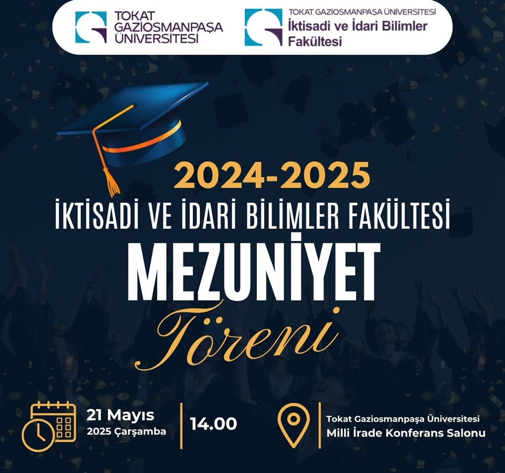 2024-2025 akademik yılı İktisadi ve İdari Bilimler Fakültesi mezuniyet töreni, mezuniyet coşkusunu hep birlikte yaşamak üzere 21 Mayıs 2025 Çarşamba günü gerçekleştirilecektir.